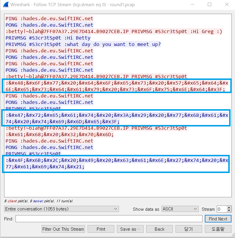 round1 와이어샤크 캡쳐 파일을 열어줍니다.