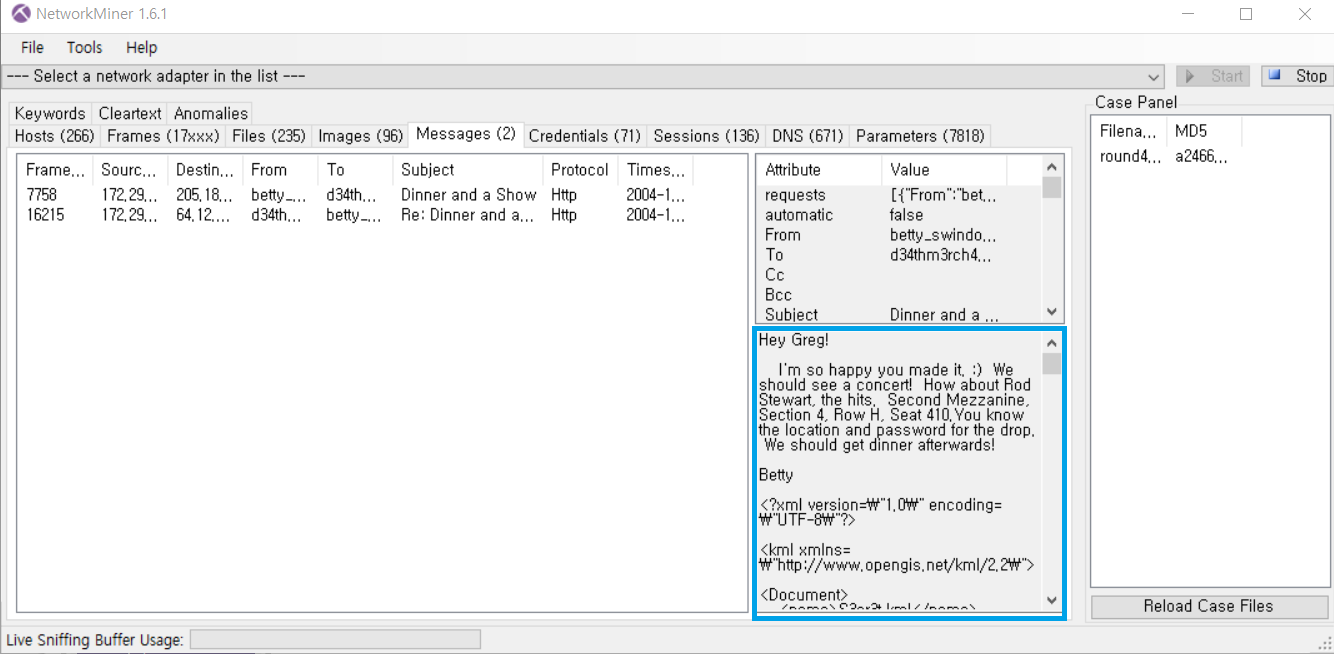 [NetworkMiner에 round4 캡쳐본 삽입 - Messages카테고리 확인]