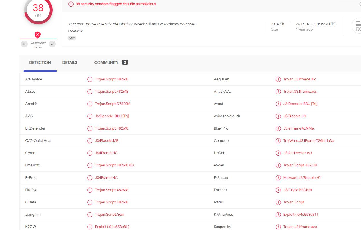 따라서 분석한 파일 중 html파일은 악성코드와 연관되어 있는 파일임을 알 수 있습니다.