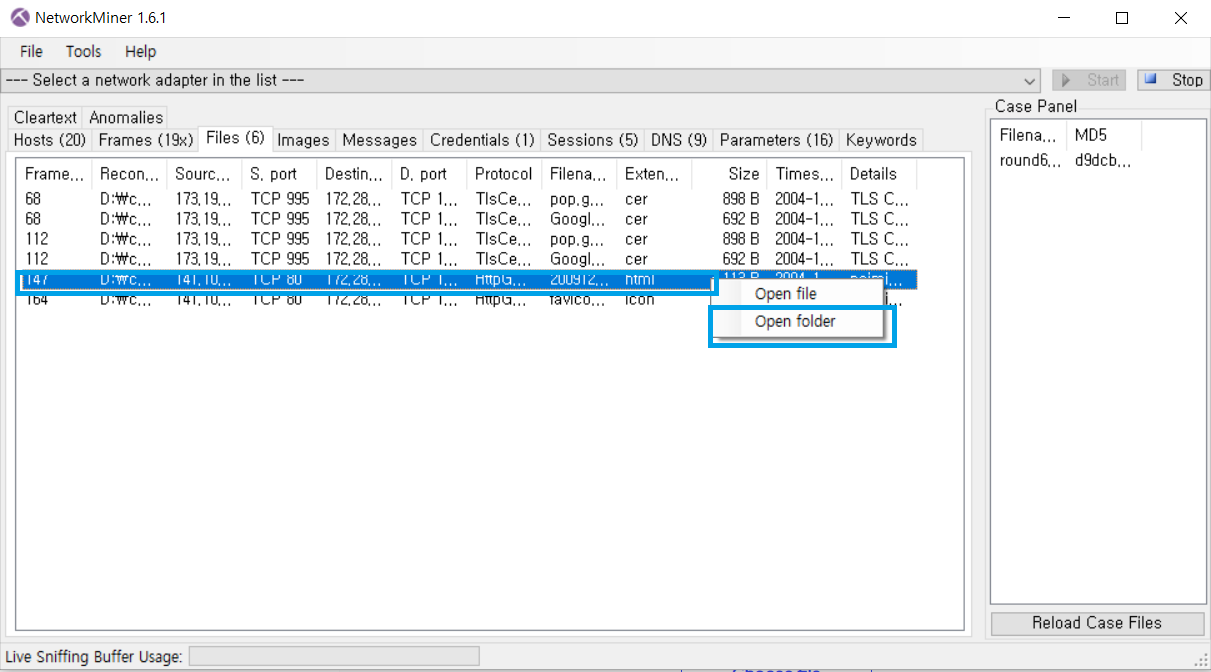 [NetworkMiner에 round6 캡쳐본 열기 - Files 카테고리 ]