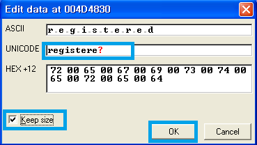 1. 이번에는 헥스 코드를 00으로 바꿔 'unregistered'->'registered'로 변경해줍시다.