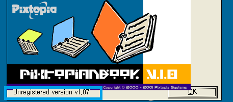 pixtopianbook.exe를 실행했을 때, 바로 보이는 창의 문구가 UNREGISTERED VERSION으로 뜹니다.